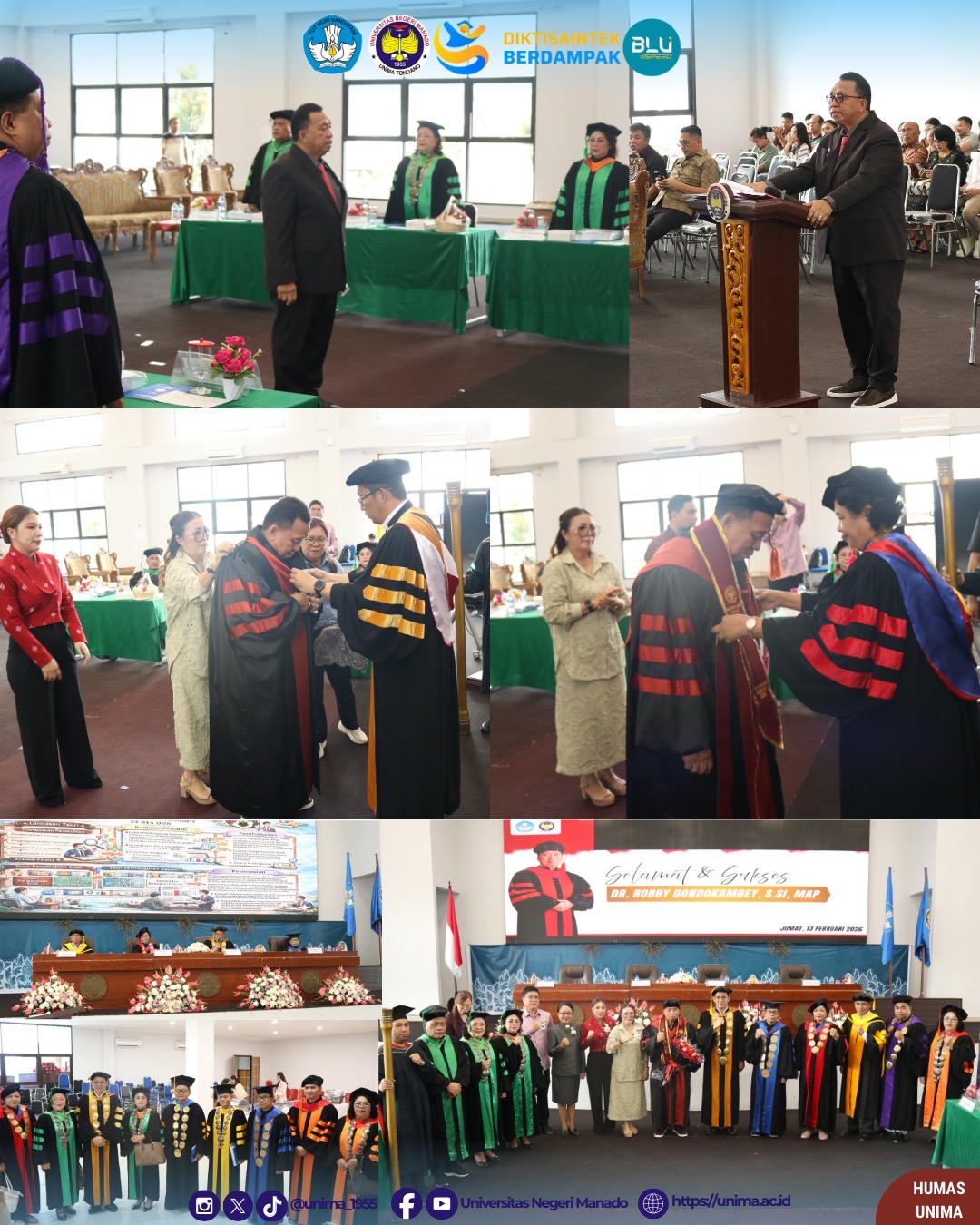 Tondano — Universitas Negeri Manado (UNIMA) kembali mencatatkan momen akademik yang membanggakan melalui pelaksanaan Ujian Promosi Doktor yang berlangsung di Gedung Training Center UNIMA, Tondano. Pada kesempatan tersebut, Bupati Minahasa, Dr. Robby Dondokambey, S.Si., MAP, resmi menyandang gelar Doktor setelah dinyatakan lulus dengan predikat Cum Laude pada Program Studi Manajemen Pendidikan (S3).