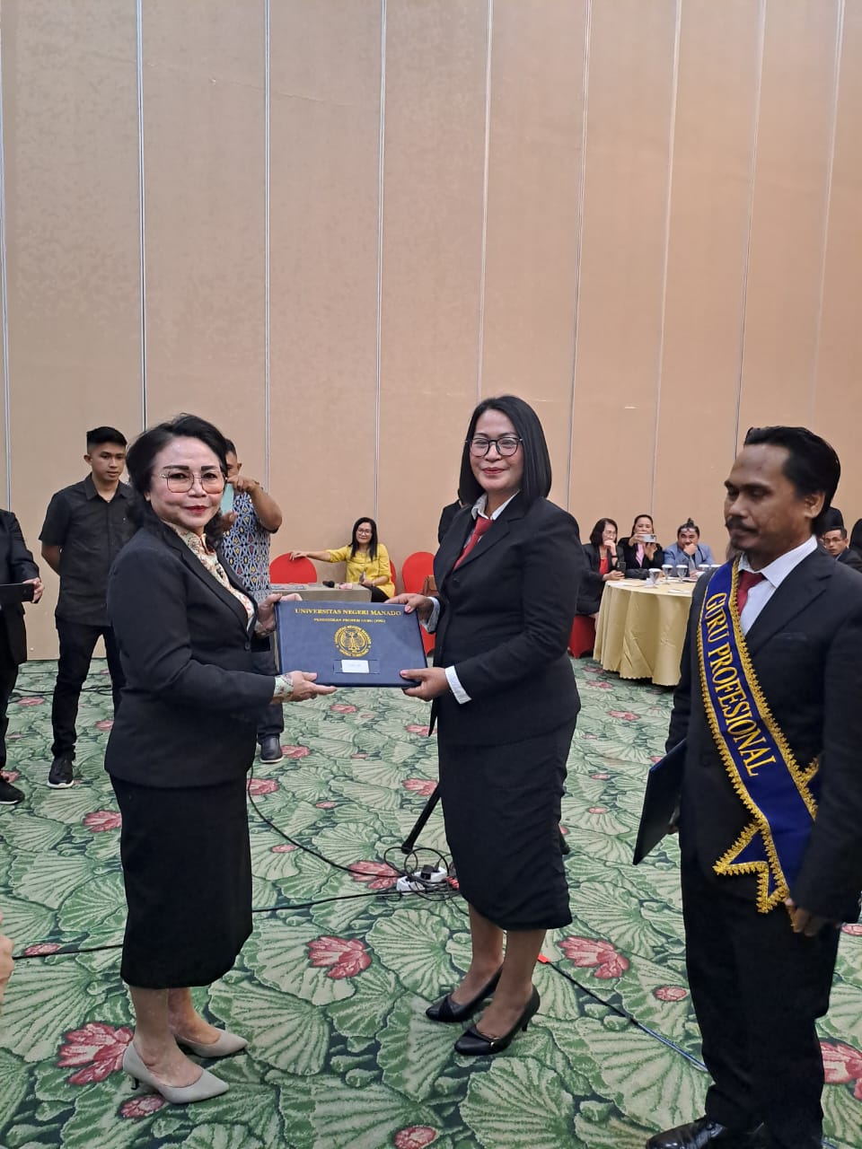Universitas Negeri Manado (Unima) menggelar pelantikan guru profesional dan sumpah profesi lulusan Program Pendidikan Profesi Guru (PPG) dalam jabatan kategori 1 angkatan 3 tahun 2023, bertempat di Ballroom Sintesa Peninsula Hotel Manado, Sabtu (13/7/2024).