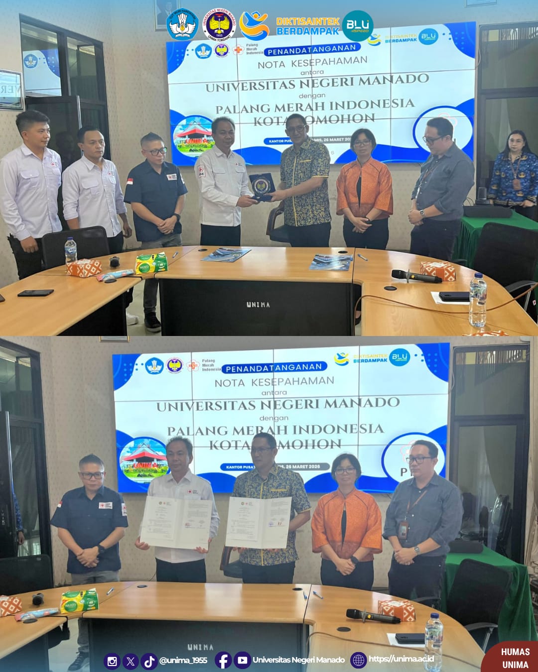 Universitas Negeri Manado resmi menjalin kerja sama dengan Palang Merah Indonesia melalui penandatanganan nota kesepahaman (MoU) yang dilaksanakan pada Kamis (26/3). Kolaborasi ini menjadi langkah strategis dalam memperkuat pelayanan donor darah serta meningkatkan kesadaran masyarakat akan pentingnya donor darah secara rutin.