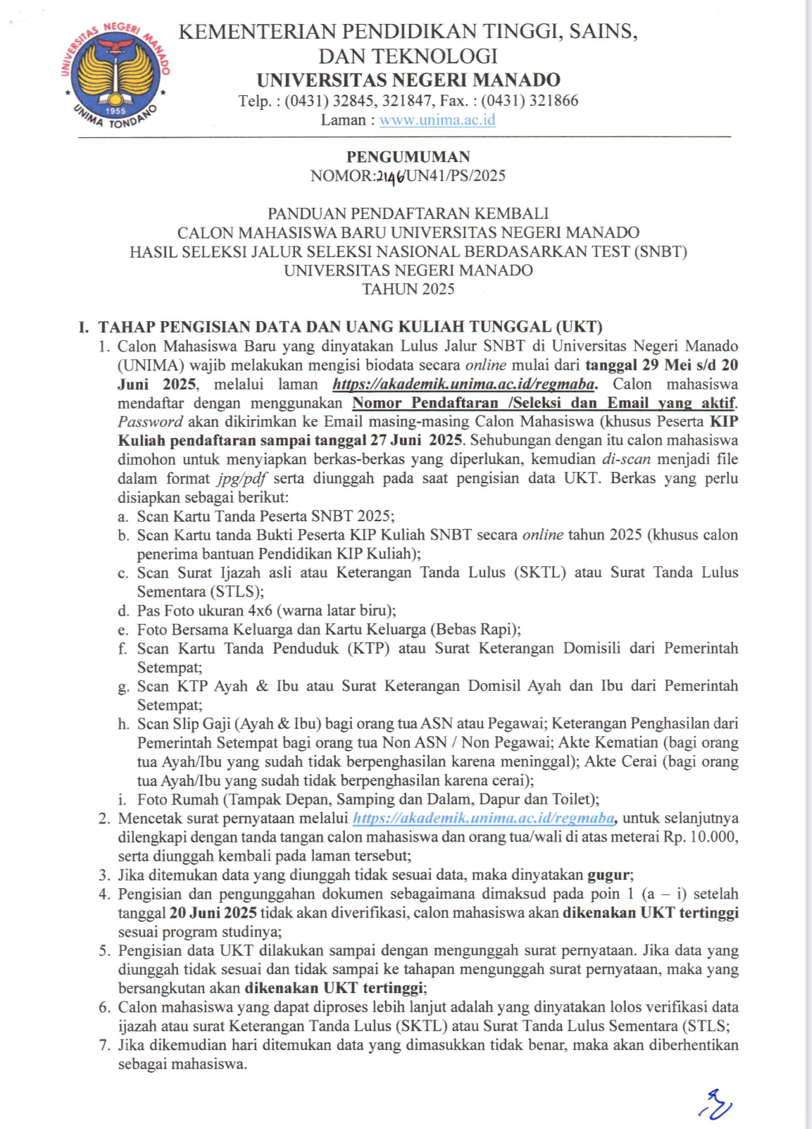 Pendaftaran Mahasiswa Baru Lulus SNBT TA 2025/2026