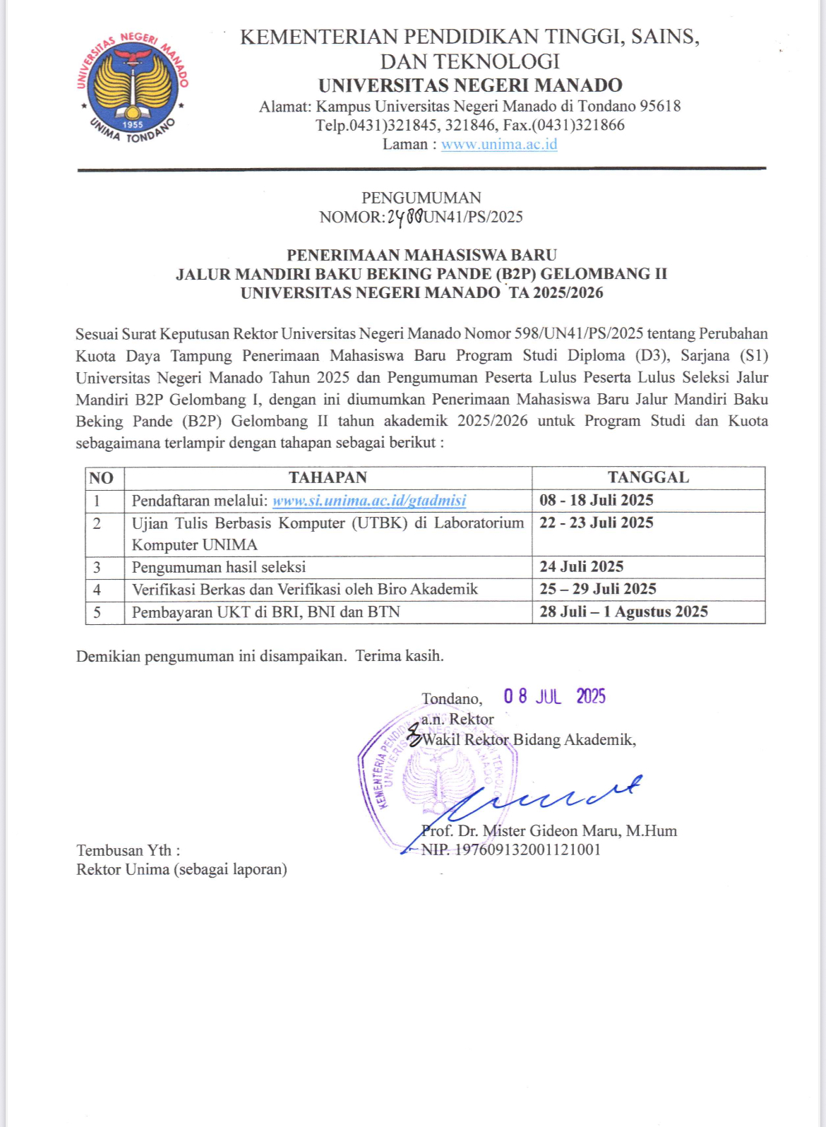 Kuliah di UNIMA