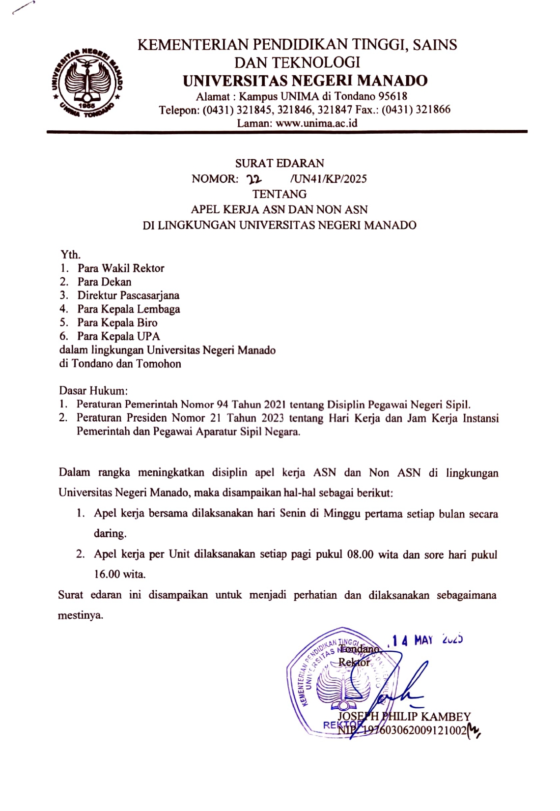 21 - EDARAN HARI LIBUR NASIONAL DAN CUTI BERSAMA TAHUN 2025 DI UNIVERSITAS NEGERI MANADO